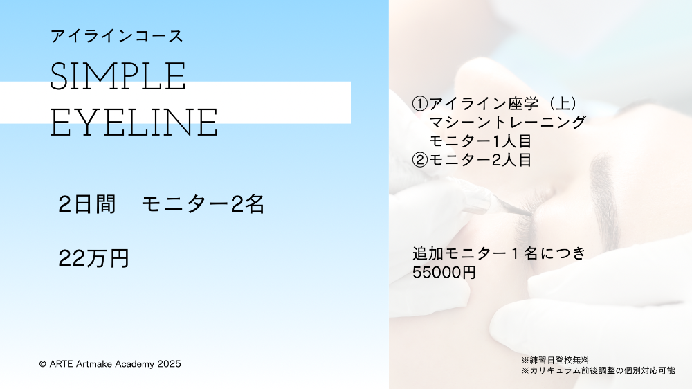 ◾️アイラインプラス追加:総合コースの方は、11万円でアイラインプラス講習の追加が可能です!