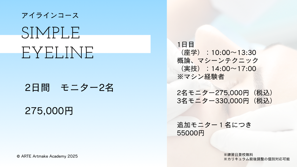 ◾️アイラインプラス追加:総合コースの方は、15万円でアイラインプラス講習の追加が可能です!